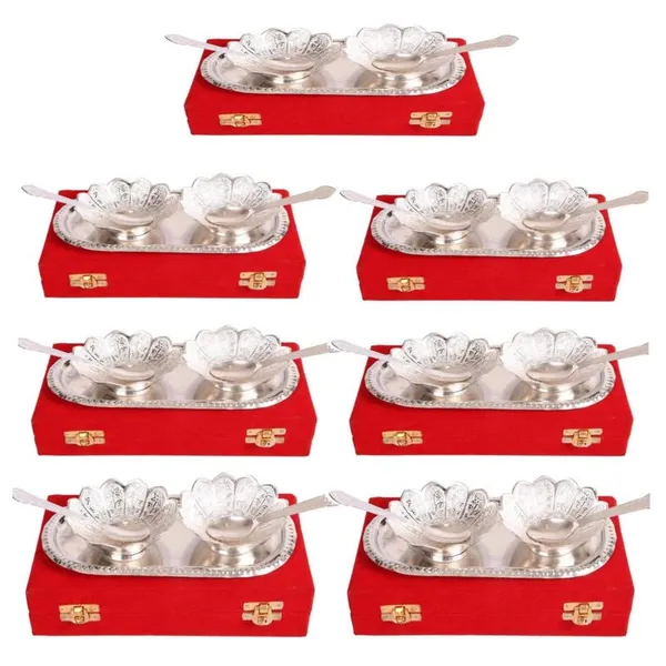 German Silver Plated Bowl with Tray Set Includes -1 Tray, 2 Bowls (150 ml), 2 Spoons (Pack of 7)